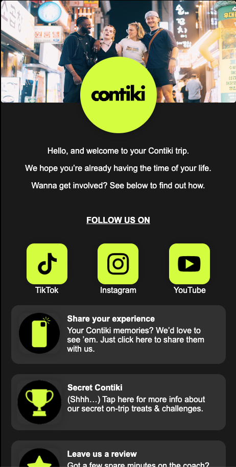 Secret Contiki was a content pillar used to surprise and delight our travellers. Something special could happen on any trip, and it was documented by our crew in UGC style.